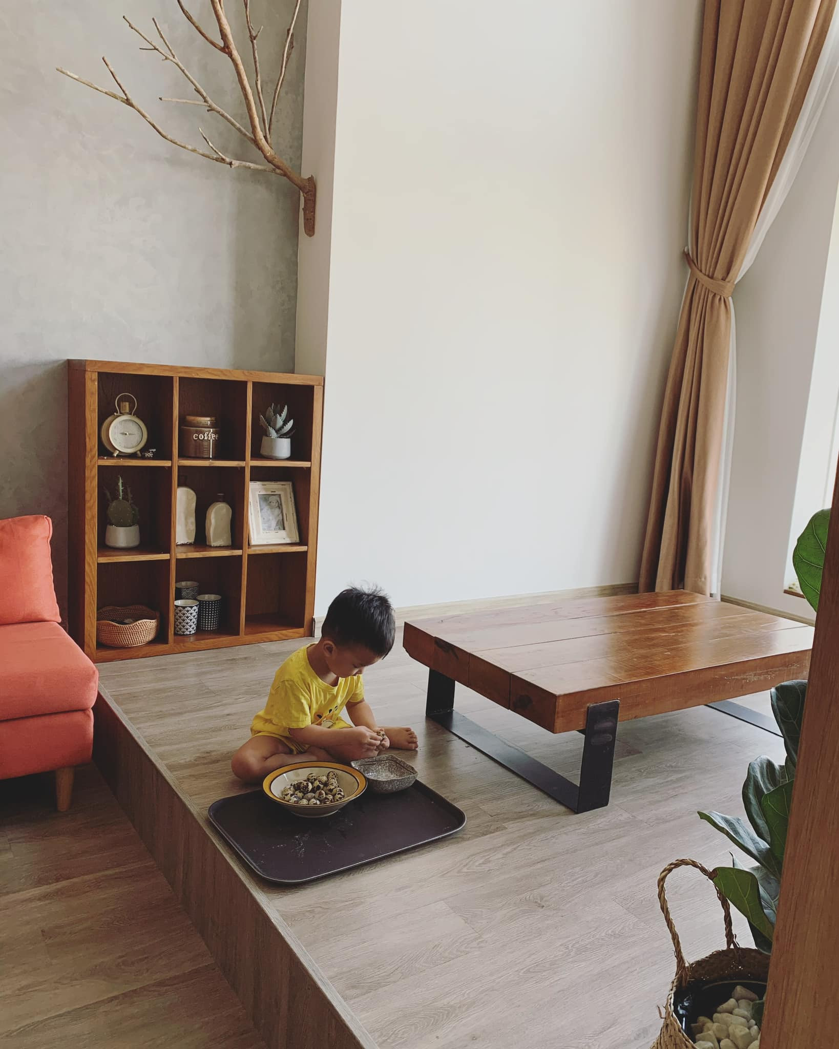 Nhờ giải pháp bố trí nội thất tối giản, nhà nhỏ nhưng vẫn có không gian cho trẻ nhỏ chạy nhảy, nô đùa.