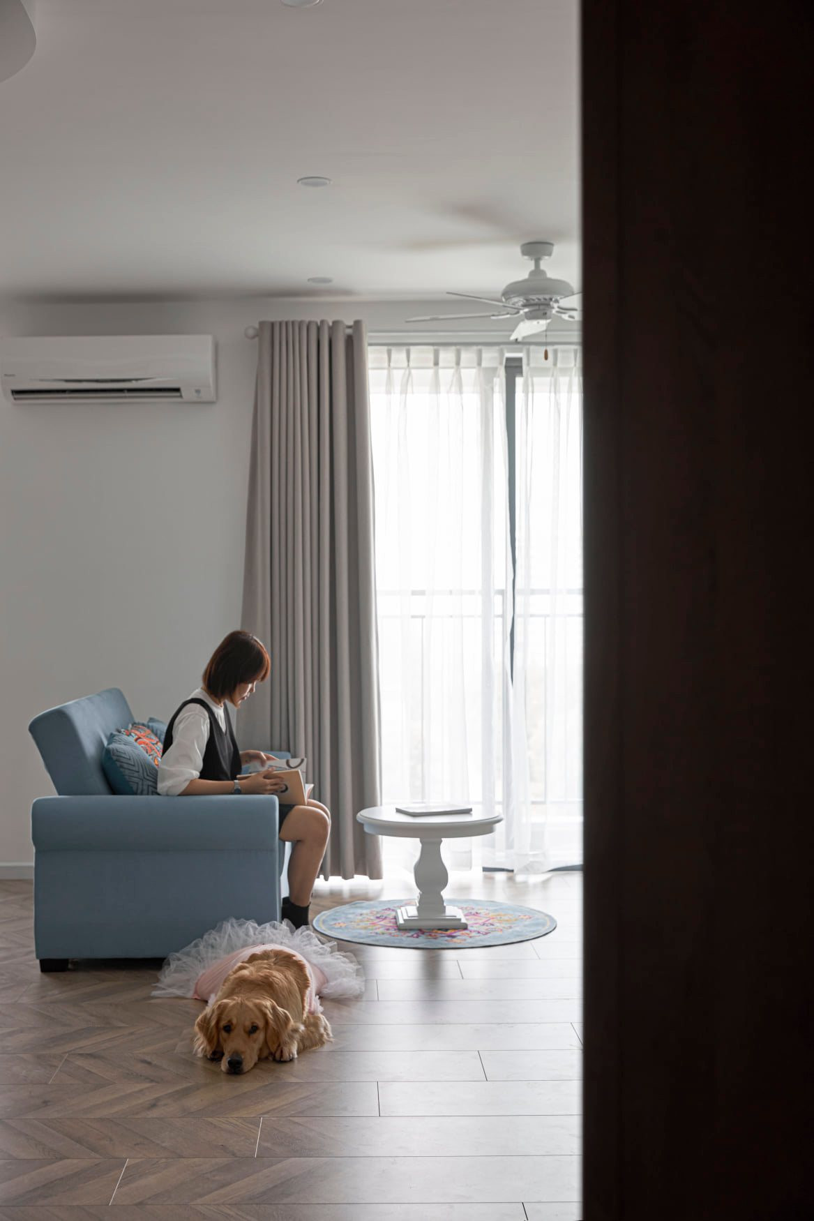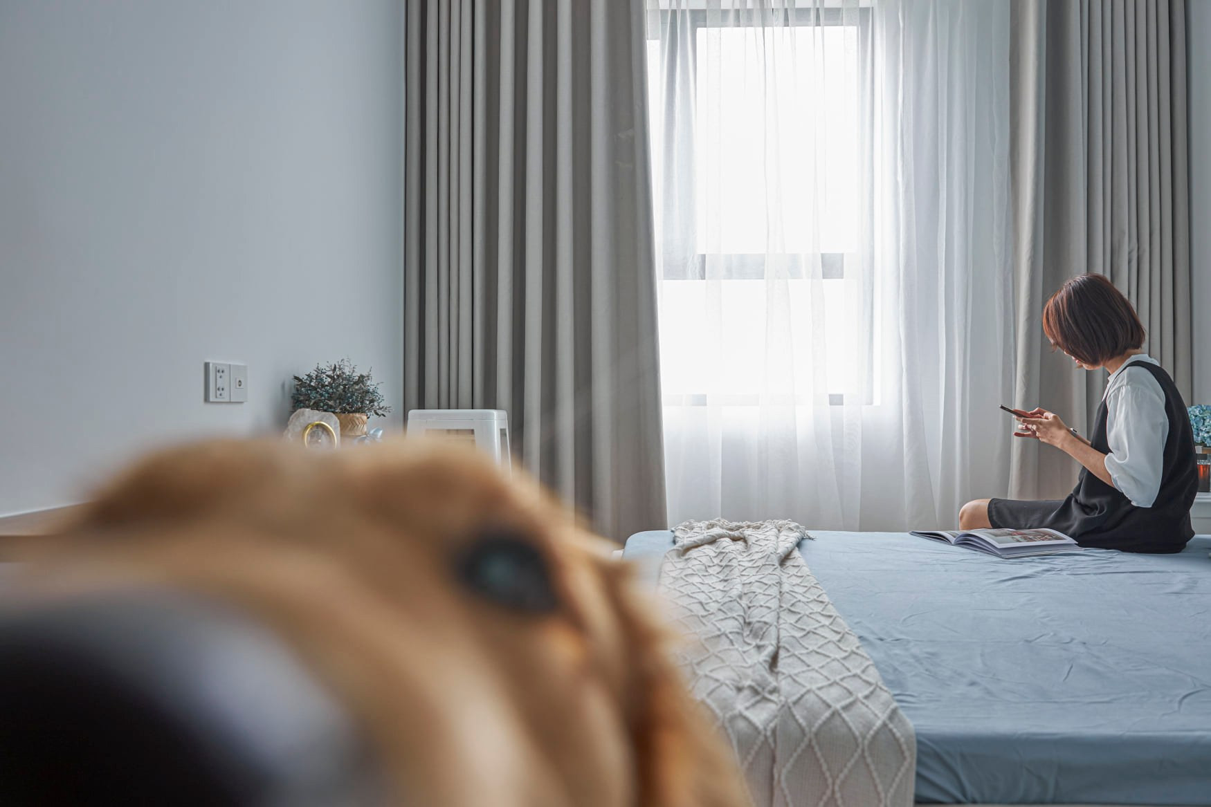 Ban đầu căn hộ có 2 phòng ngủ nhưng gia chủ đã đập bỏ 1 phòng, để thú cưng của mình có chỗ chạy nhảy.