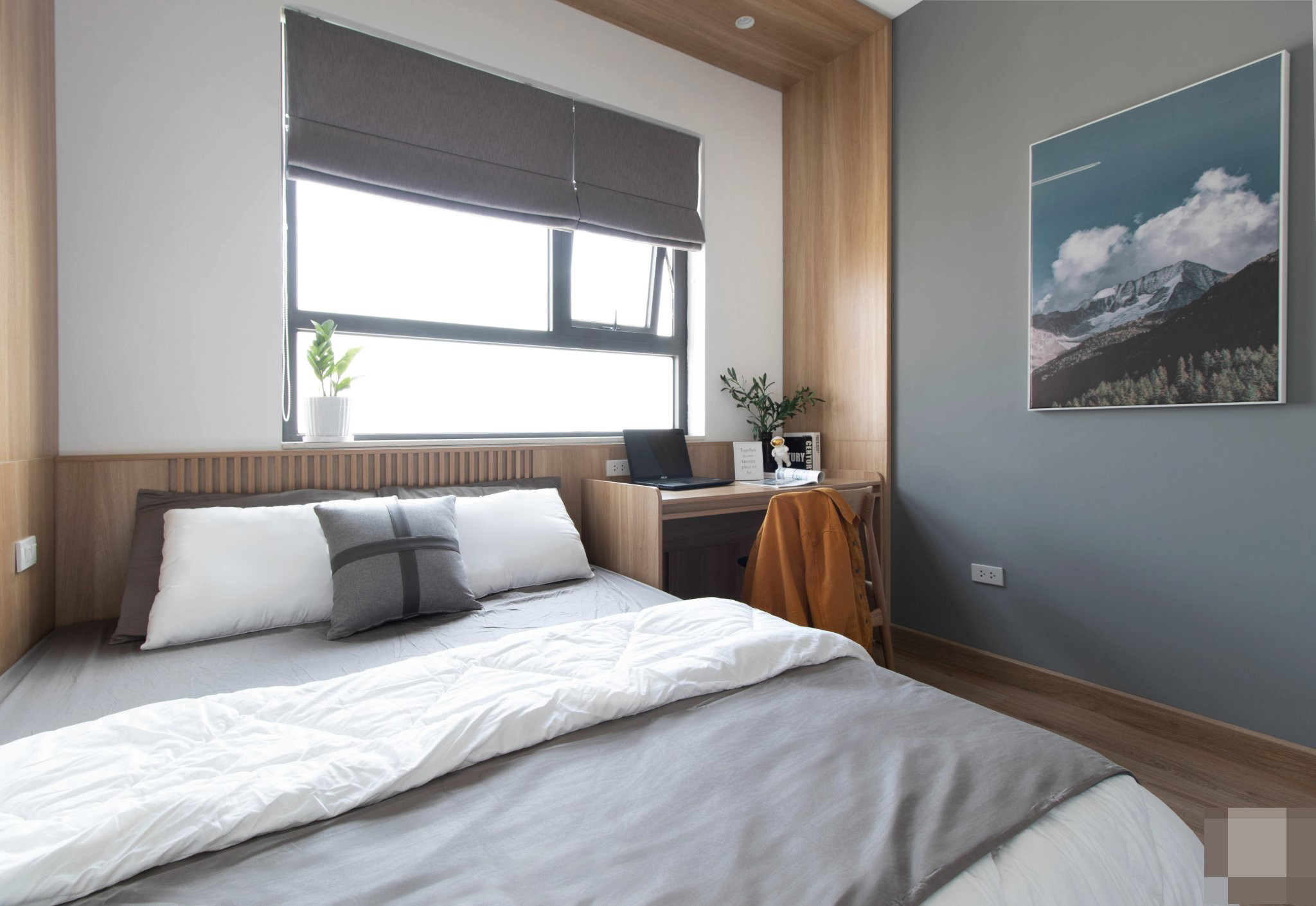 Gam màu xám xanh dễ chịu, nhẹ nhàng và không bị bí bách. Cửa sổ to, hút gió vào phòng rất dễ chịu.