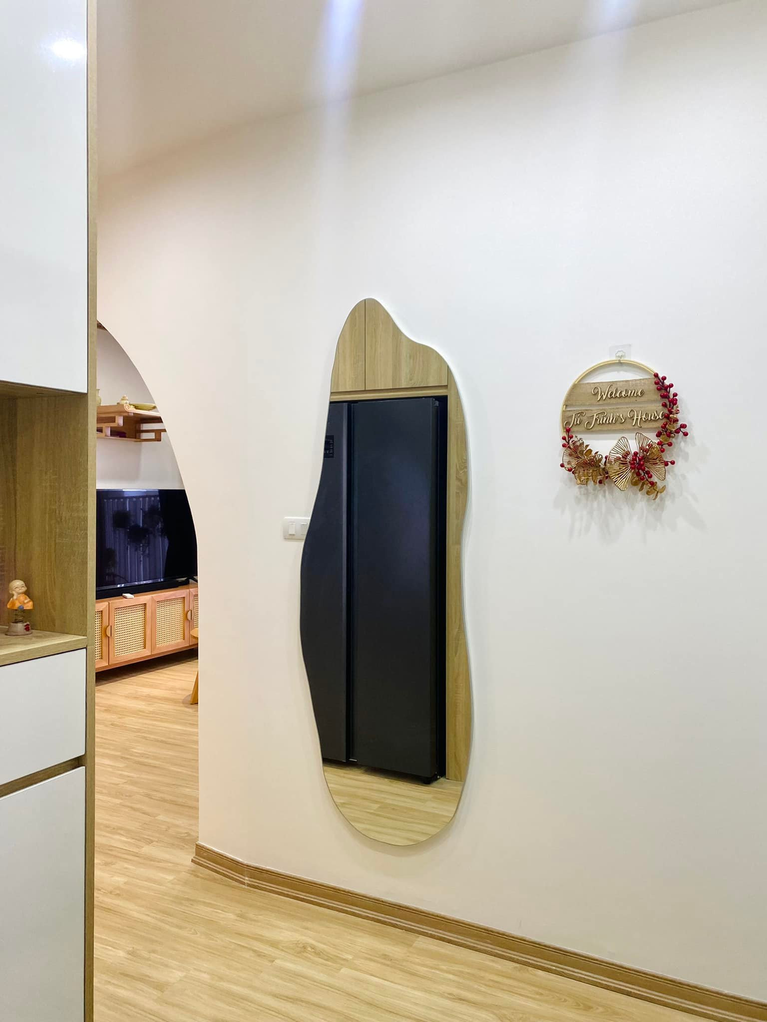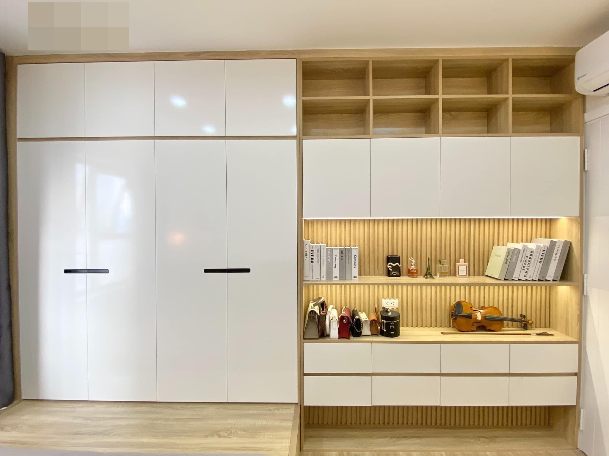 Đối diện đó là kệ trưng bày tinh tế.