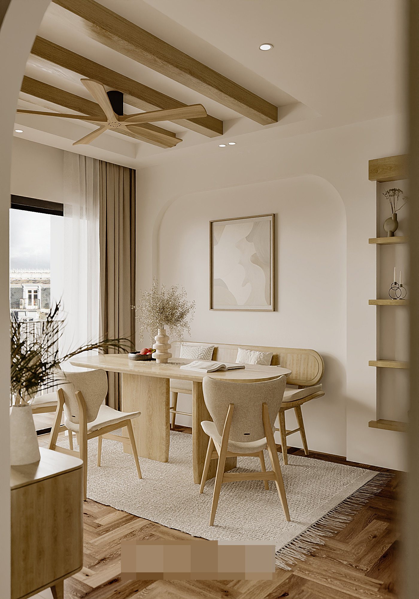 Công trình được kiến trúc sư Trần Mạnh Tùng cùng cộng sự thực hiện. Anh cho biết, phong cách Japandi là xu hướng đến từ sự đơn giản, tinh tế và nhẹ nhàng.