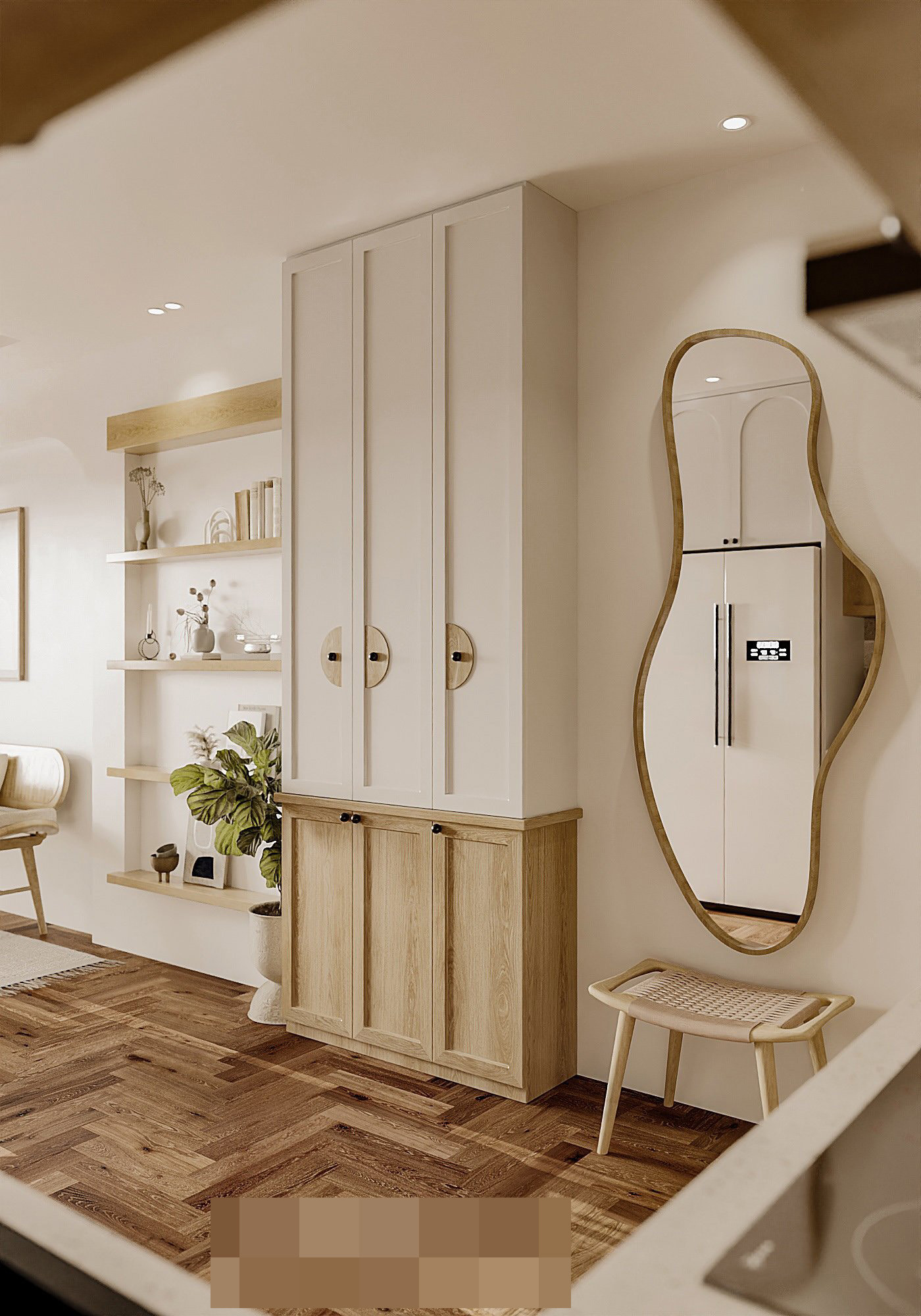 Căn hộ phong cách Japandi của cặp vợ chồng son tại Hà Nội mang sắc vàng nhẹ mộc mạc của nội thất kết hợp cùng sắc trắng sáng từ sơn tường.