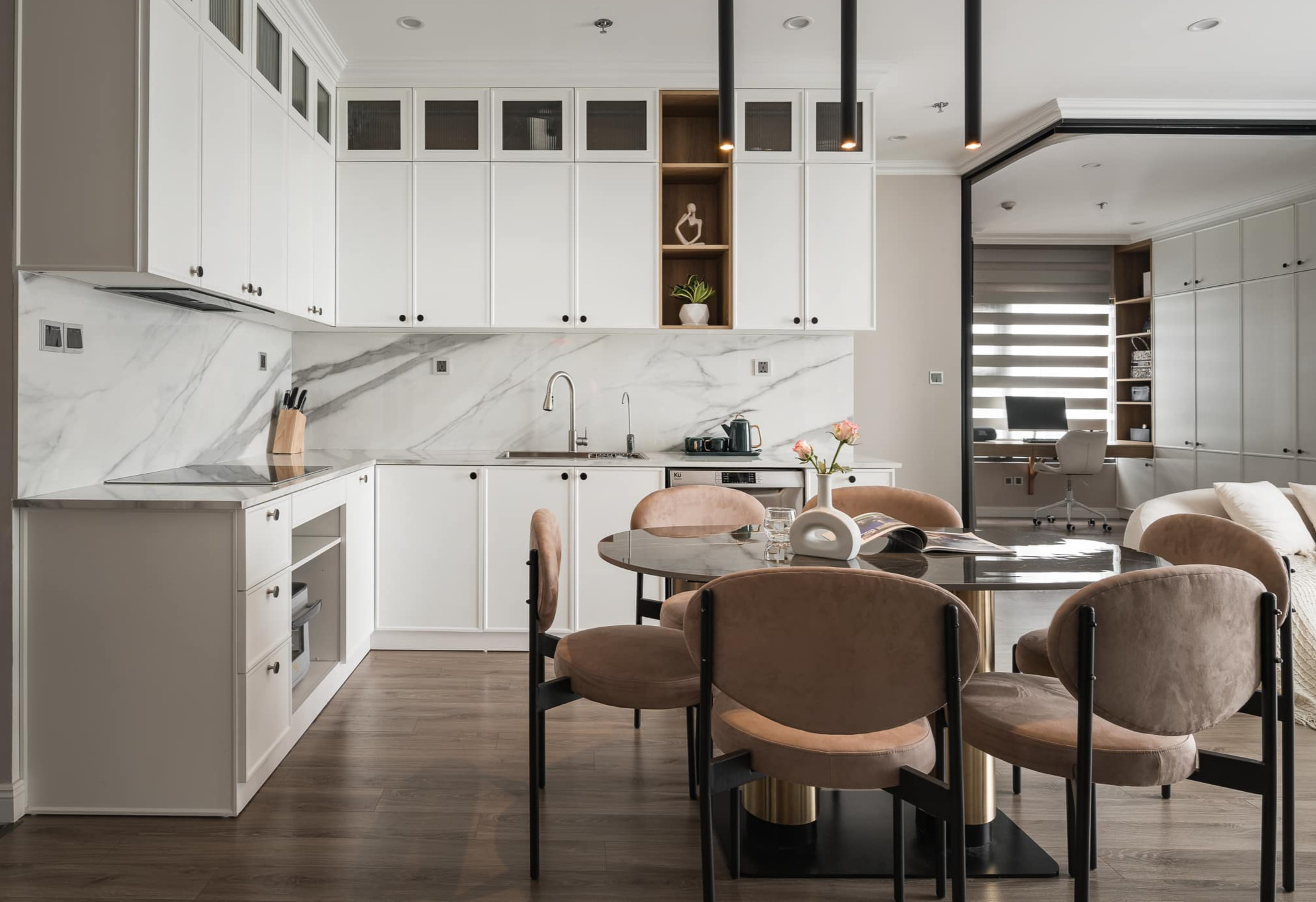 Chị Vũ Khánh Linh là người hoạt động trong ngành làm đẹp nên rất thích sự tinh tế, trang nhã của phong cách tân cổ điển. Khi sở hữu căn hộ 2 mặt thoáng, vợ chồng chị đã quyết tâm phải có một căn hộ theo đúng mơ ước bấy lâu nay.