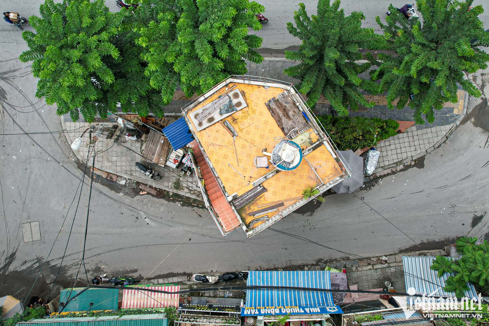 Dự án đường vành đai 2 (trục Vĩnh Tuy – Ngã Tư Sở) được khởi công từ tháng 4/2018, bao gồm tuyến đường bộ trên cao và mở rộng dưới thấp. Sau khi giải phóng mặt bằng, nhiều hộ dân đang từ mặt tiền ngõ nhỏ ra mặt tiền lớn trên đường vành đai nghìn tỷĐặc biệt nhất là căn nhà độc đáo với 4 mặt tiền tại 128 Đại La (phường Đồng Tâm, quận Hai Bà Trưng) nằm giữa lối đi khu tập thể và mặt đường Đại LaĐược biết ngôi nhà được quản lý theo nguyên trạng, nằm ngoài chỉ giới giải phóng mặt bằng, diện tích trên 15m2 nên được tồn tạiKhu vực tầng 1 được người dân thuê để kinh doanh buôn bánTuy có 4 mặt tiền nhưng ba hướng ra các đường ngõ bên trongNhìn từ trên xuống, ngôi nhà có mặt cắt hình ngũ giác