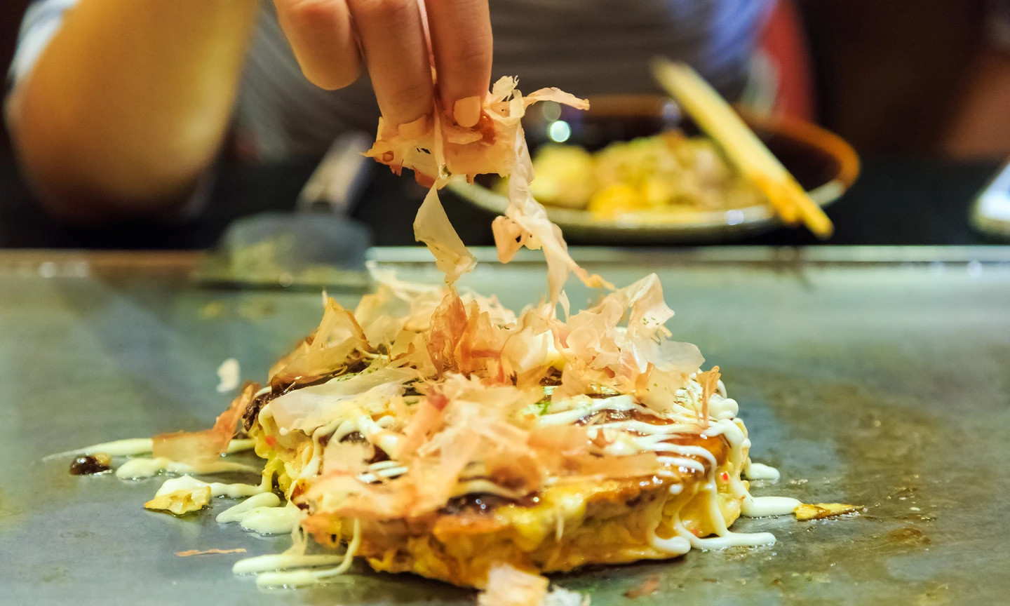 Nhiều người dân địa phương gợi ý rằng nếu du khách không biết phải ăn gì ở Nhật thì hãy chọn Okonomiyaki. Món bánh xèo đặc trưng này nổi tiếng bởi phần nhân đầy ắp, bao gồm bạch tuộc, tôm, thịt ba chỉ, khoai hay bắp cải. Nhân bánh mặn mà kết hợp với phần bỏ bánh giòn giòn dai dai tạo nên sự “bùng nổ vị giác” địch thực. Đừng quên cho thêm sốt mayonaise và tương ngọt để hương vị món ăn thêm đậm đà.