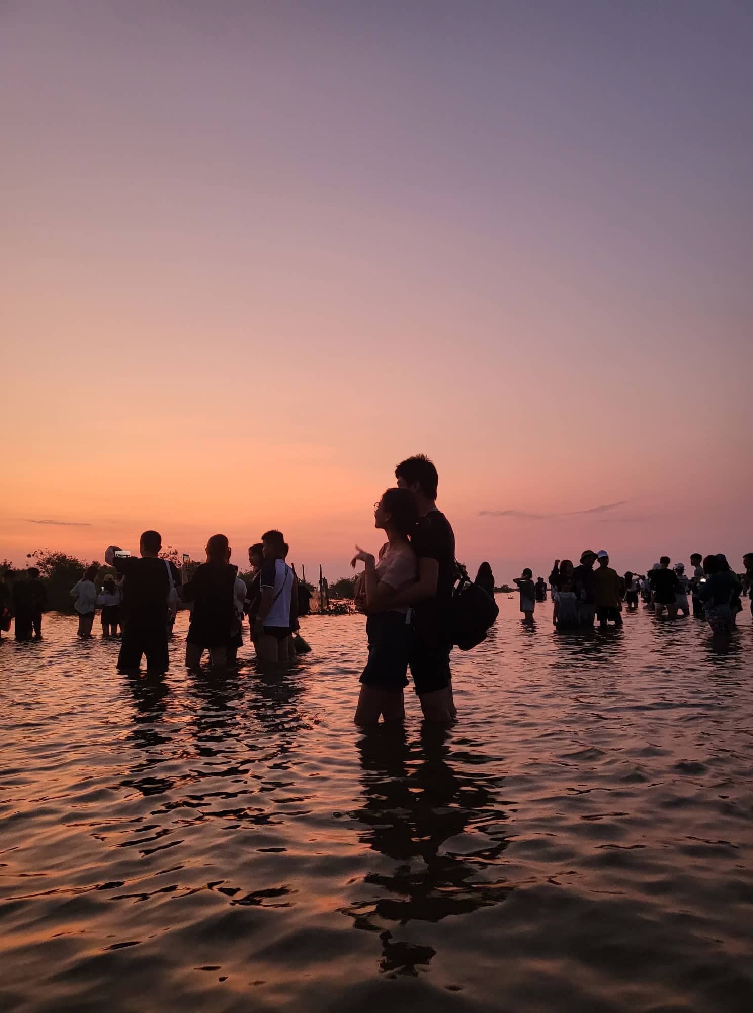 "Khoảng 4 giờ sáng, nước biển vẫn còn xâm xấp mắt cá nhân nhưng chỉ hơn nửa tiếng sau, thủy triều lên, nước dâng cao tới quá đầu gối. Có nơi, nước ngập ngang đùi, nhiều du khách phải xắn quần, vác đồ trên lưng để tránh bị ướt", nữ du khách cho biết. Theo Nhi, nhiều du khách cảm thấy hụt hẫng khi không hề tìm thấy khung cảnh "biển vô cực" đẹp lãng mạn như trong các bộ ảnh chia sẻ trên mạng xã hội.