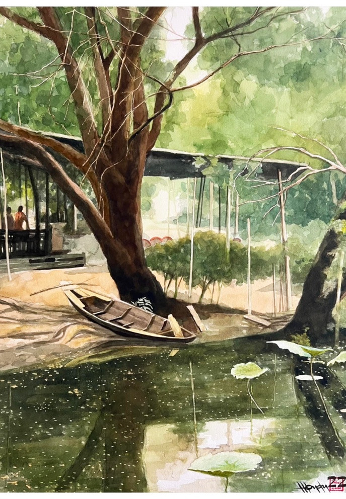 NSƯT Phi Điểu viết những dòng tâm tình gửi đến con trai: “Cũng đã lâu lắm rồi má không viết thư cho ai, từ khi cha con đi về phía bên kia. Chỉ tiếc ông không kịp nhìn thấy sự trưởng thành của con qua vài lần triển lãm, vẽ sông nước miền Tây, quê hương của ba má.