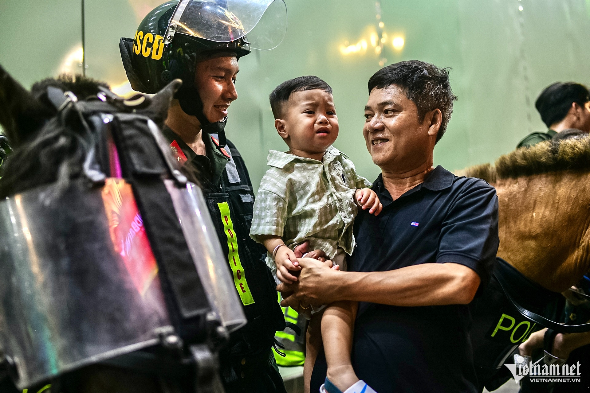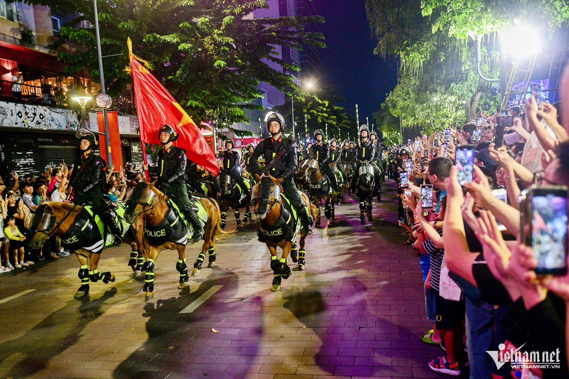 40 chiến sĩ cảnh sát cơ động được trang bị súng AK, máy bộ đàm, dùi cui cưỡi trên lưng ngựa diễu hành trên phố đi bộ Nguyễn Huệ với chiều dài khoảng 1,2 km. Hàng trăm người dân đứng bên đường theo dõi, nhiều người hò reo phấn khích khi đội kỵ binh đi qua.