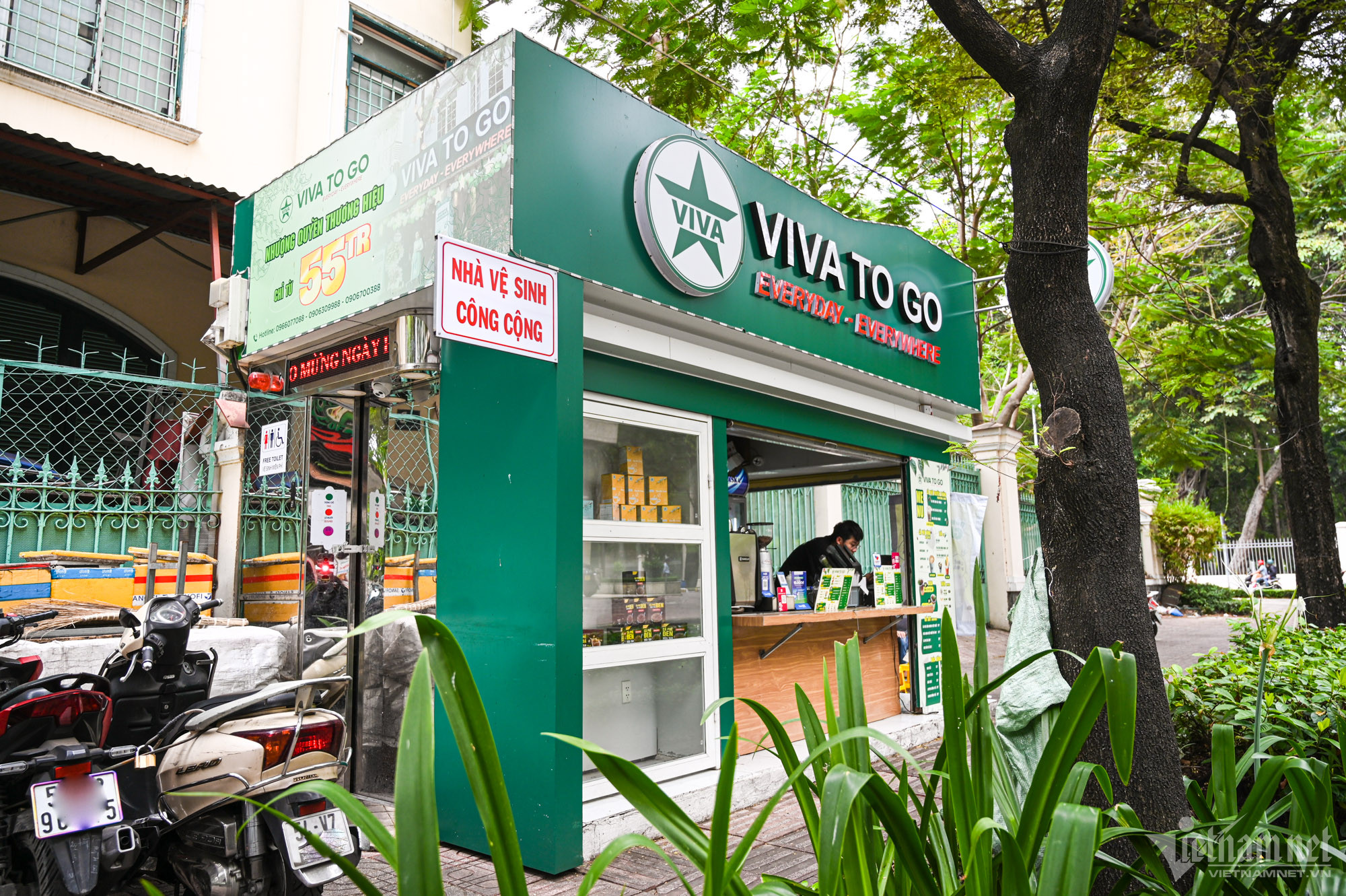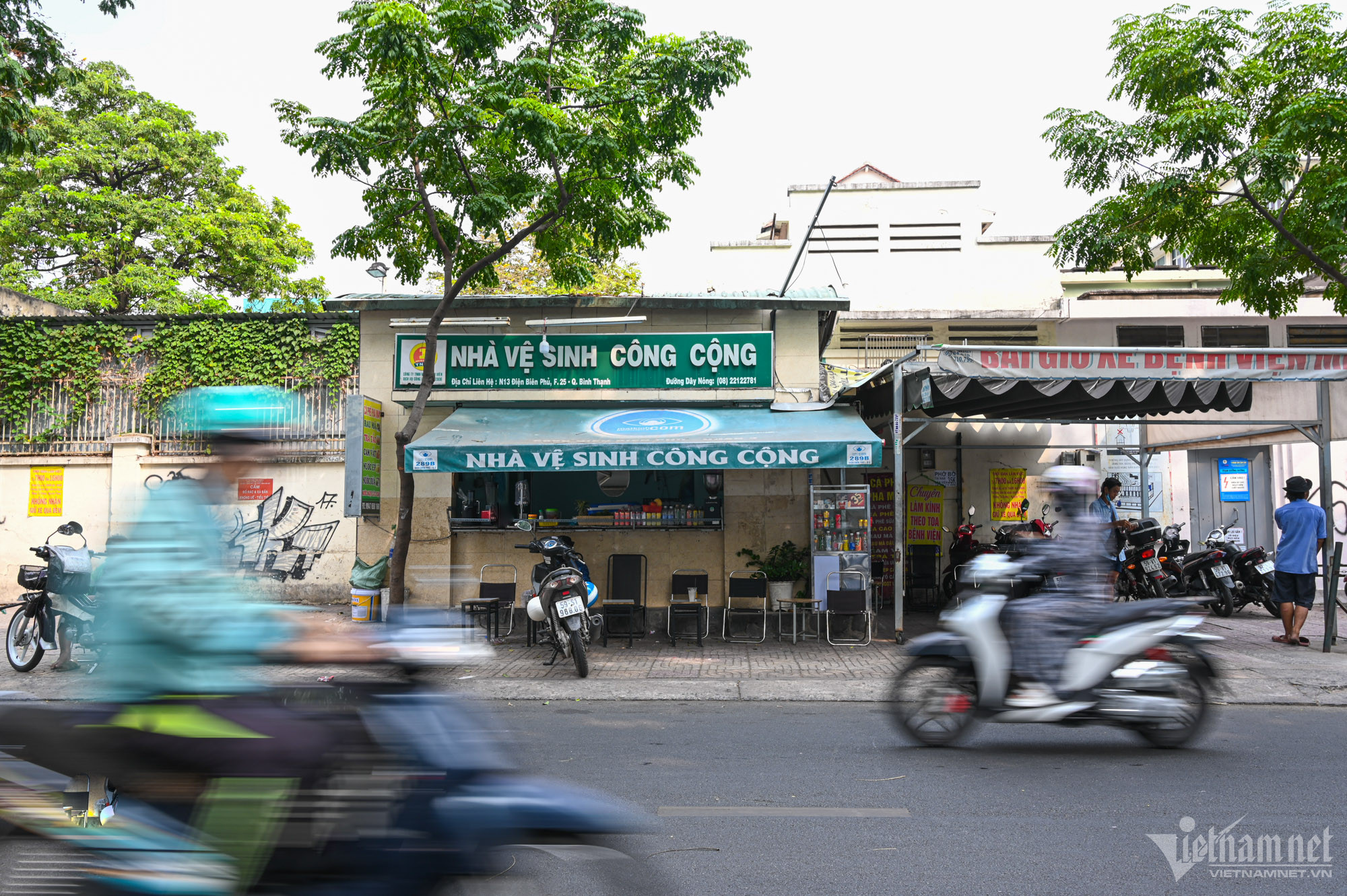 Nếu không để ý kỹ, rất khó để nhận ra một NVSCC tại góc đường Nguyễn Thị Minh Khai - Lê Quý Đôn (quận 1) bởi khu vực cửa ra vào có rất nhiều xe dựng kín. Đây là mô hình ki-ốt quán cà phê kết hợp vận hành NVSCC nhận được nhiều hưởng ứng của người dân.