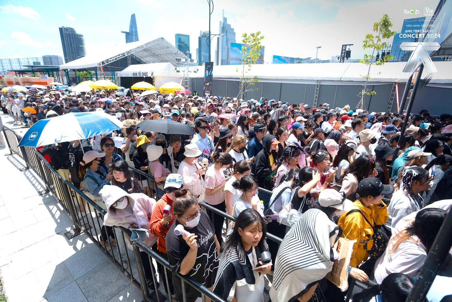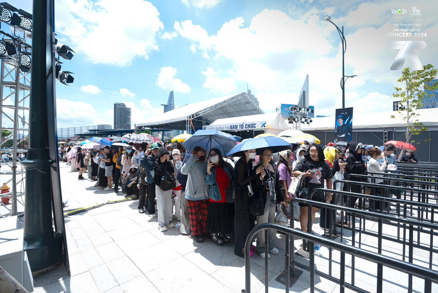 Dù tối nay chương trình mới bắt đầu nhưng khán giả đã tập trung, xếp hàng dài dưới nắng tại địa điểm diễn ra đêm nhạc. Ca sĩ Ngọc Anh 3A chia sẻ với VietNamNet, cô là một trong những khách mời của Anh trai say hi tối nay, 28/9. Nữ ca sĩ cũng tiết lộ sân khấu tối nay sẽ rất lớn, hoành tráng.
