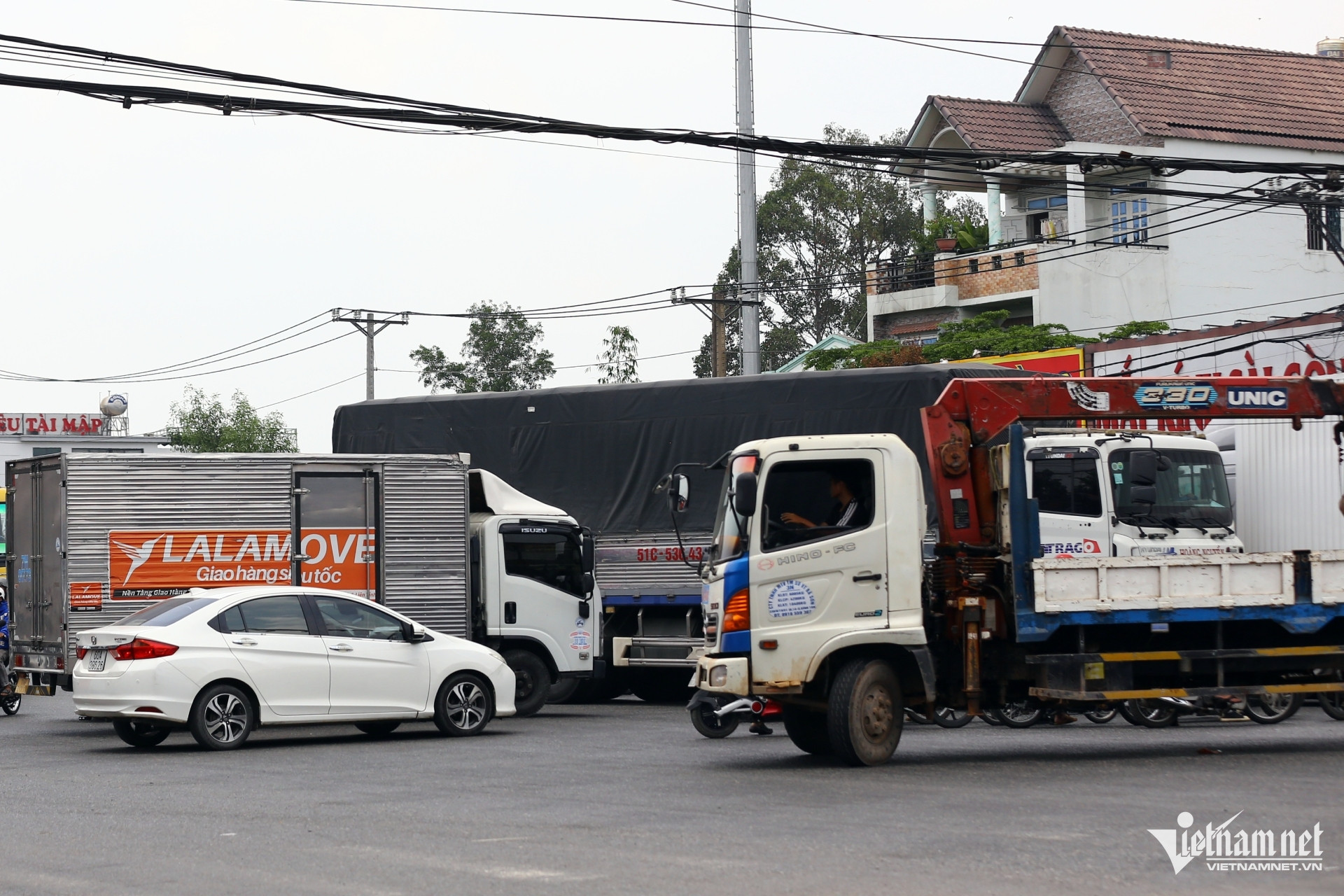 Ghi nhận của VietNamNet, khoảng 11h cùng ngày, hàng loạt ô tô, xe tải, xe container và xe máy từ các hướng bị ùn ứ, gần như không thể di chuyển tại ngã 4 Lộc An giao với quốc lộ 51 (huyện Long Thành).
