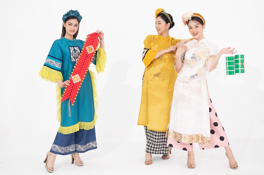 MV Qua cầu gió bay cũng đặc biệt giới thiệu bộ sưu tập áo dài Tết Nhâm Dần của Cao Minh Tiến. Với sắc màu rực rỡ, thiên về màu nóng, bộ sưu tập tạo cho người thưởng thức một cảm giác xuân tràn đầy hy vọng vào một tương lai tươi sáng, tốt đẹp phía trước.