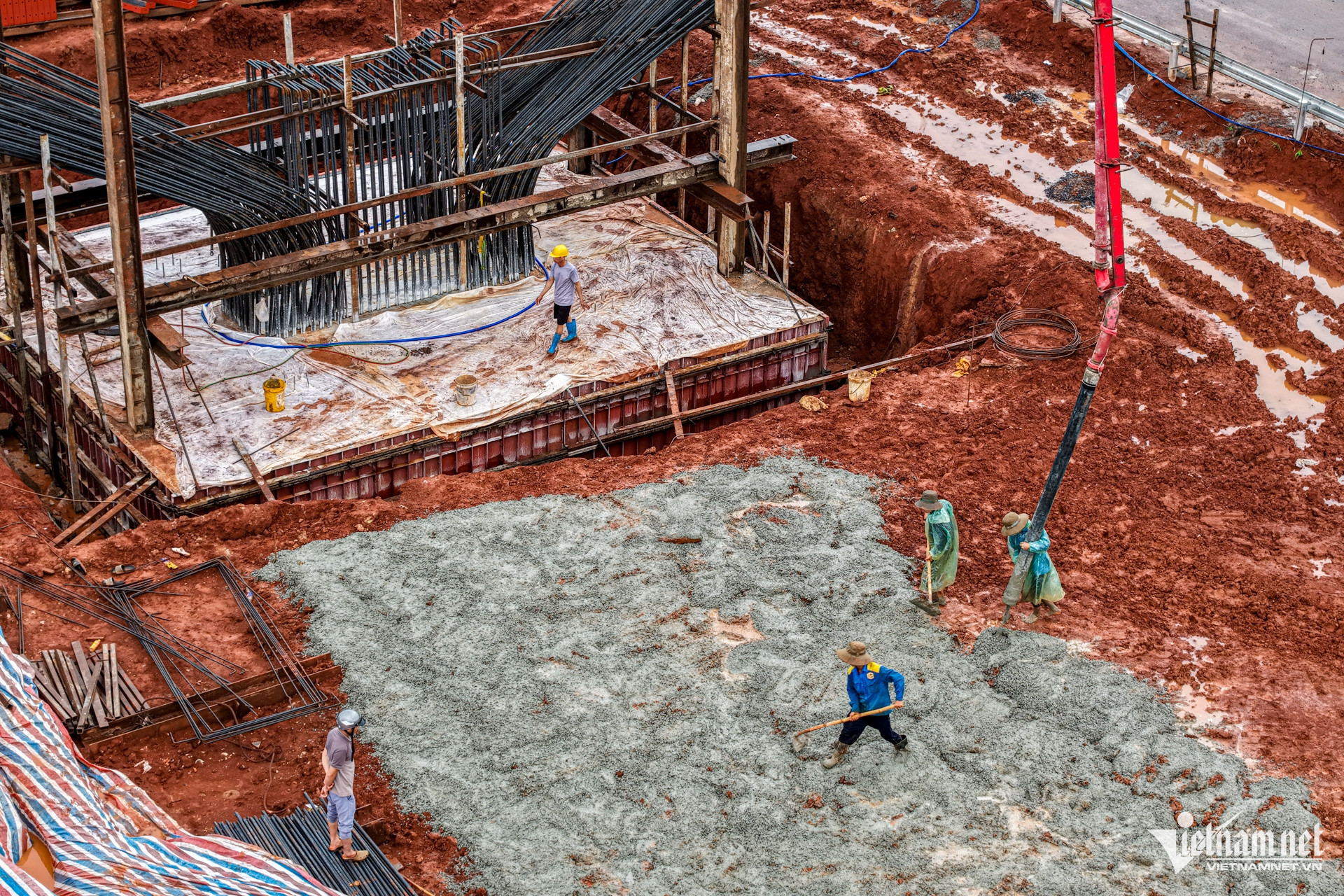 Trên công trường, hàng chục công nhân thi công để đảm bảo tiến độ bàn giao toàn tuyến, dự kiến sẽ chính thức khai thác vào tháng 9/2025.