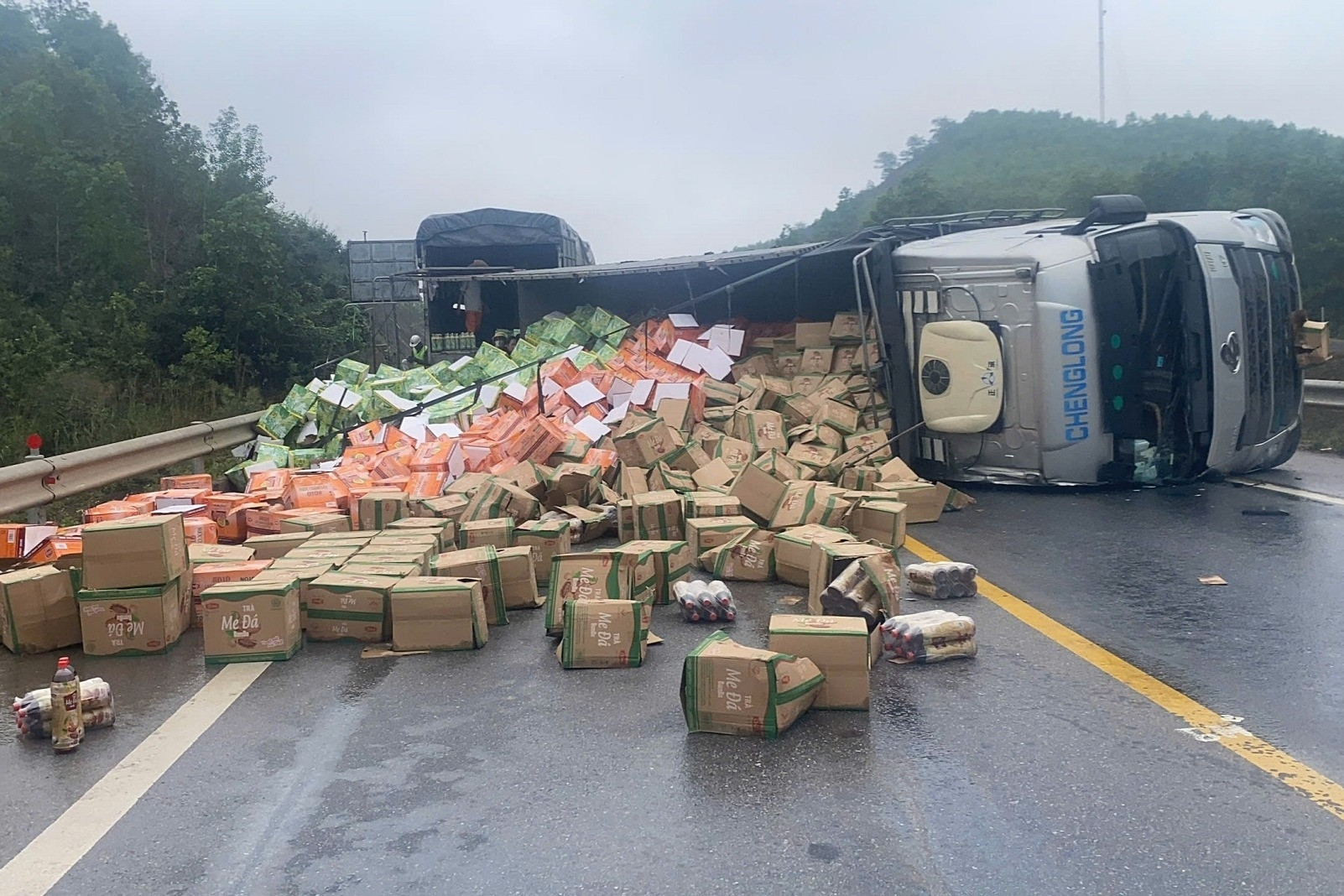 Lật xe trên cao tốc Cam Lộ - La Sơn, ách tắc giao thông kéo dài hơn 5 tiếng
