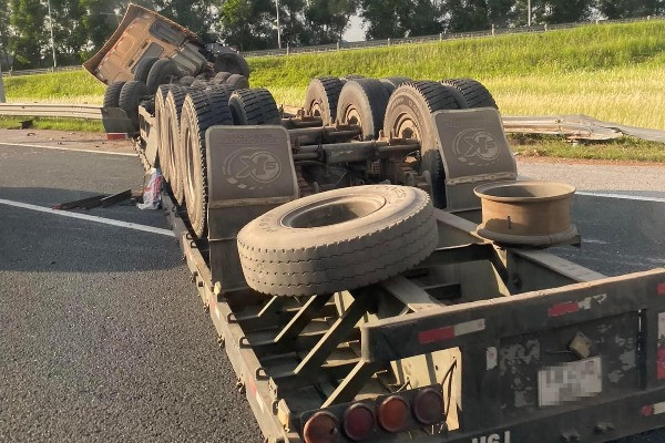 Đang lưu thông trên cao tốc Hà Nội - Hải Phòng, ô tô đầu kéo bất ngờ va chạm với ô tô con. Vụ tai nạn khiến xe đầu kéo lật úp, thùng container văng ra đường.