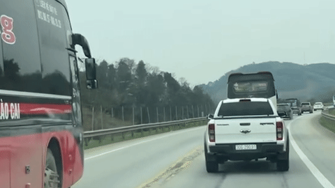Đang lưu thông cùng chiều, bất ngờ xe khách 16 chỗ chèn ép một ô tô tải vào làn khẩn cấp trên cao tốc Nội Bài - Lào Cai. Hành vi này gây mất an toàn giao thông, tiềm ẩn xảy ra tai nạn.