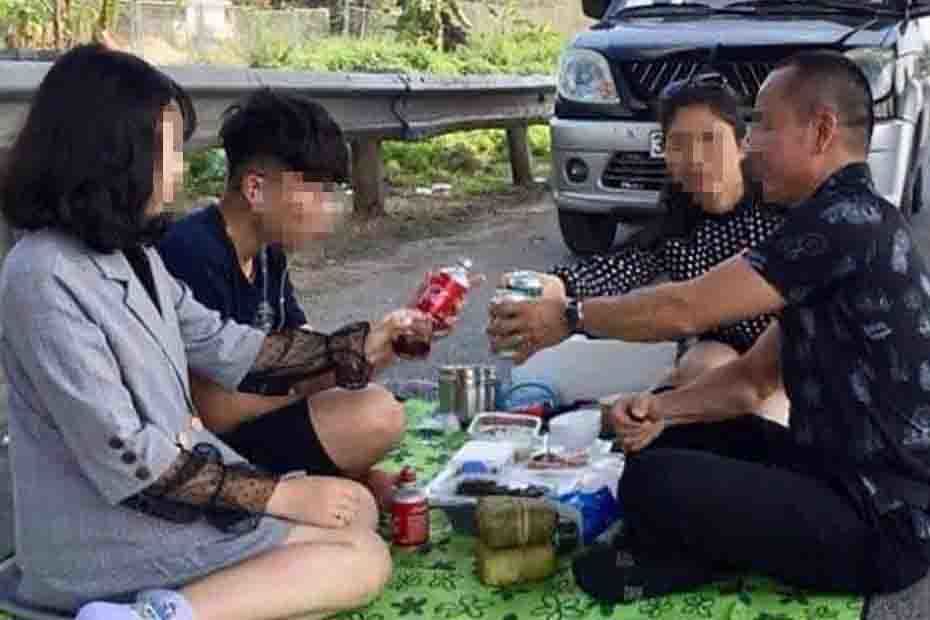 Kỳ lạ gia đình mở tiệc trên cao tốc Nội Bài - Lào Cai
