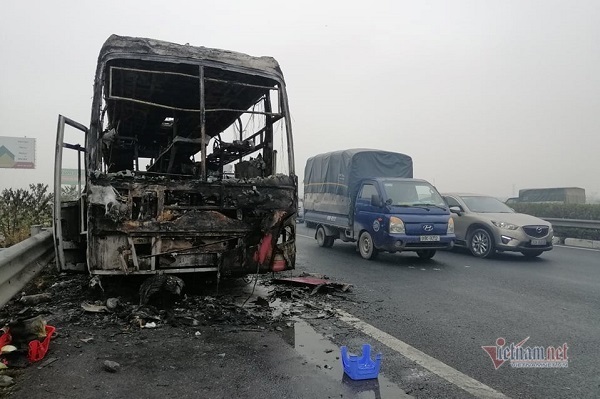 Xe khách cháy trơ khung trên cao tốc Pháp Vân - Cầu Giẽ