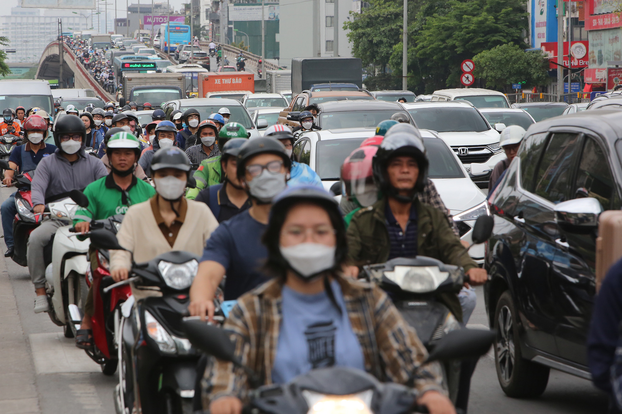 Dòng phương tiện đổ ra các cửa ngõ trên đường vành đai 3 và ngã tư Ngọc Hồi rất đông.