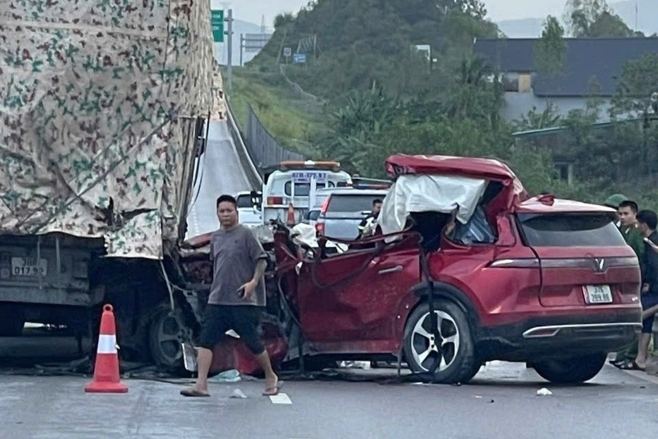 Trước đó, khoảng 15h ngày 8/11, ô tô 7 chỗ biển kiểm soát 37K-289xx di chuyển hướng Bắc – Nam, khi đến Km 377+150 (địa phận xã Trường Lâm, tỉnh Thanh Hóa) thì va chạm với xe tải lưu thông cùng chiều. Cú va chạm mạnh khiến phần đầu ô tô 7 chỗ bị biến dạng hoàn toàn.
