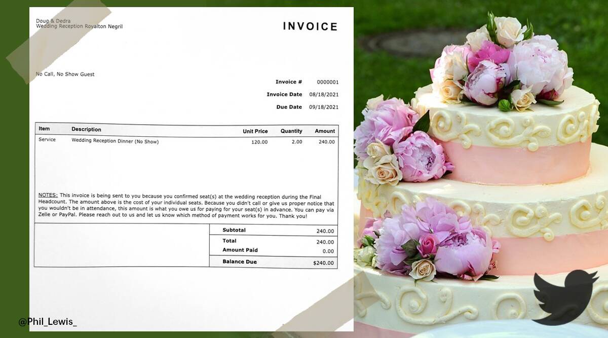 Cặp đôi gửi hóa đơn đòi tiền khách mời vì không... dự đám cưới.