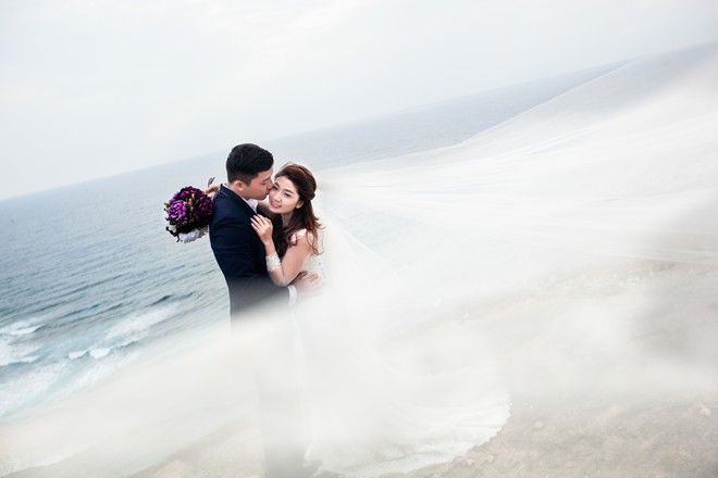 Bộ ảnh cưới của Đắc Trung – An Ly được thực hiện giữa tiết trời mưa bão nhưng vẫn không làm mất đi vẻ lung linh và sự tự nhiên trong cách thể hiện tình cảm giữa hai nhân vật chính.