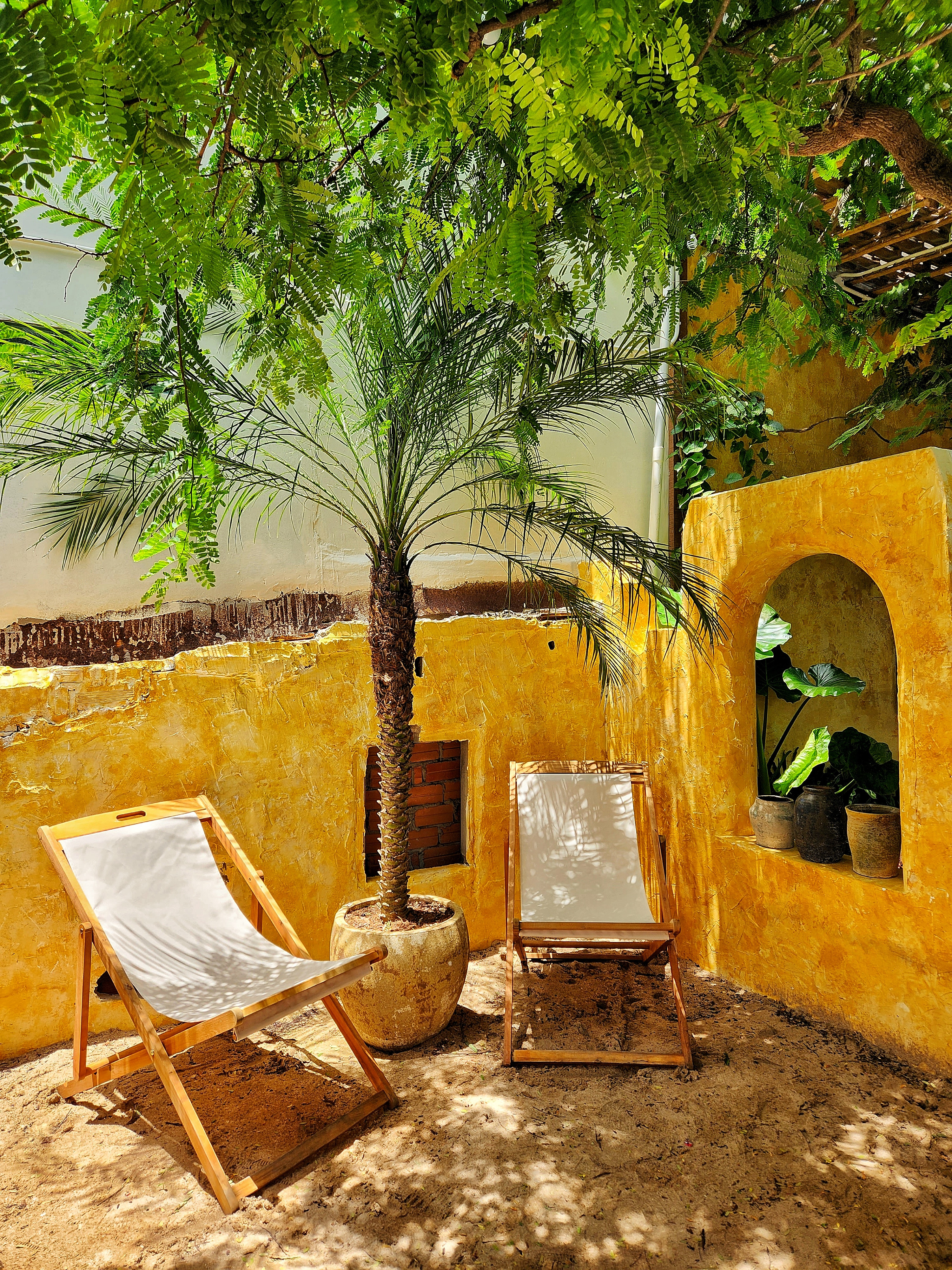 "Cuối tháng 4, mình về đây xem địa điểm. Ngôi nhà và mảnh vườn nằm trong một con hẻm nhỏ trên đường Lê Lợi, mặt sau hướng trực tiếp ra biển”, anh Nguyên cho biết. Quá tâm đắc với vị trí này, trở về TP.HCM, cặp đôi tìm đơn vị thiết kế.