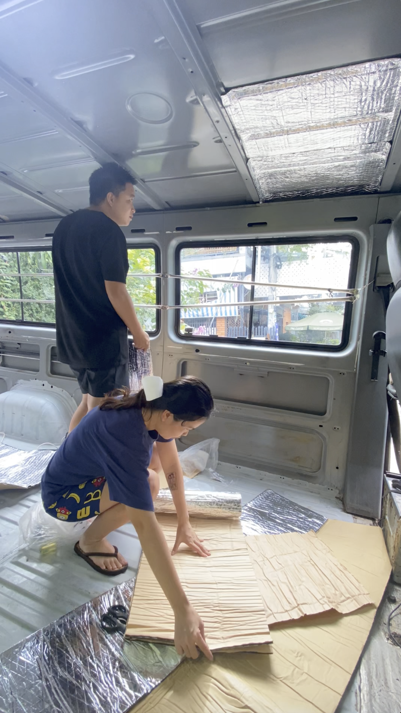 Tháng 3/2022, sau thời gian tìm kiếm, cặp đôi chi 200 triệu để mua một chiếc xe 16 chỗ, Mercedes Benz Sprinter 2009. Thời điểm ấy, chiếc xe vẫn đang được sử dụng để làm dịch vụ, ngoại hình khá mới và hoạt động ổn định. Anh Vũ đưa xe đi hạ tải, hoán cải và sơn lại thân vỏ.