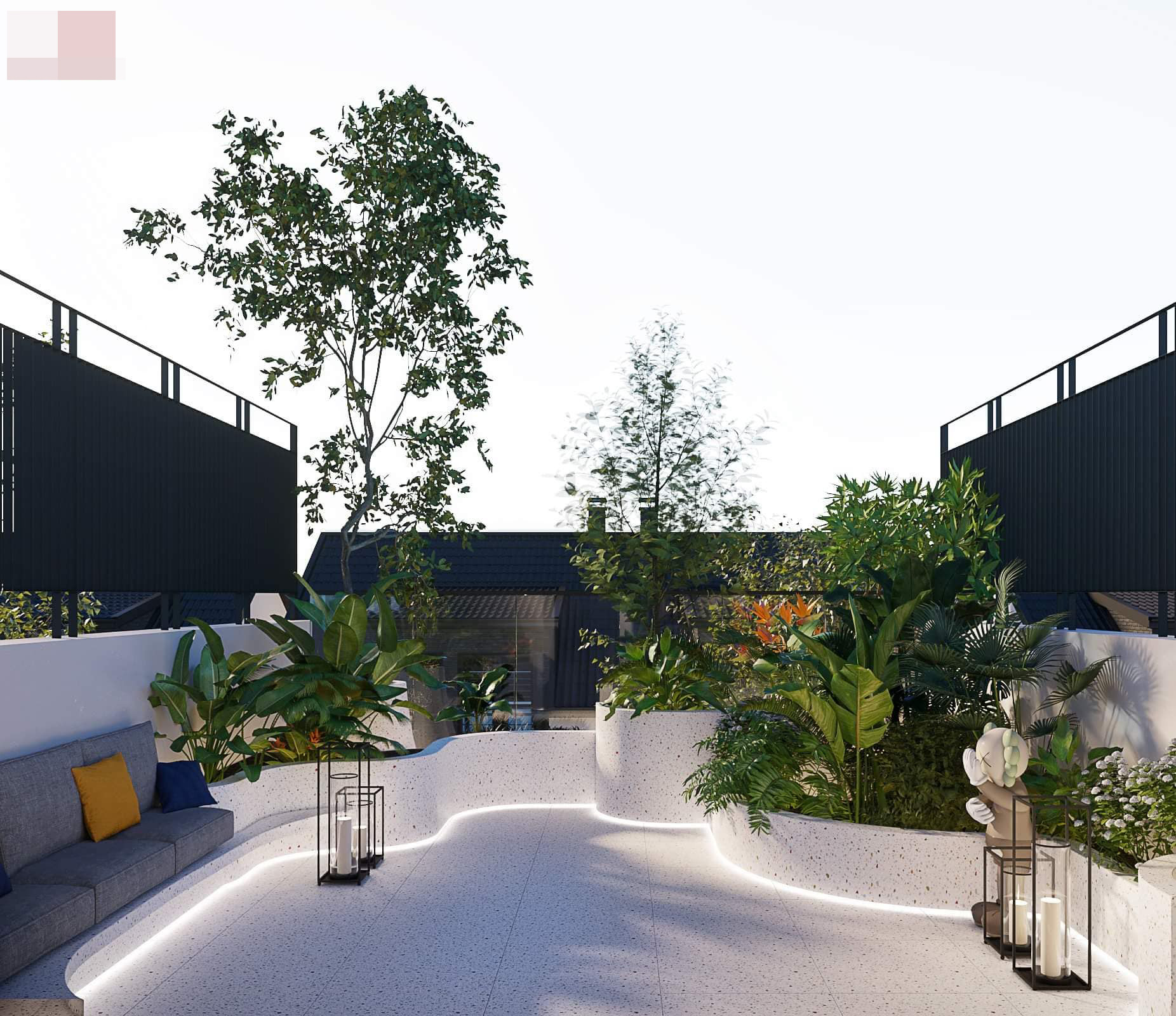 Màu xanh phủ quanh lối đi và một góc vườn cho gia chủ góc ngồi chill, sống ảo hay tụ tập bạn bè đều thú vị.