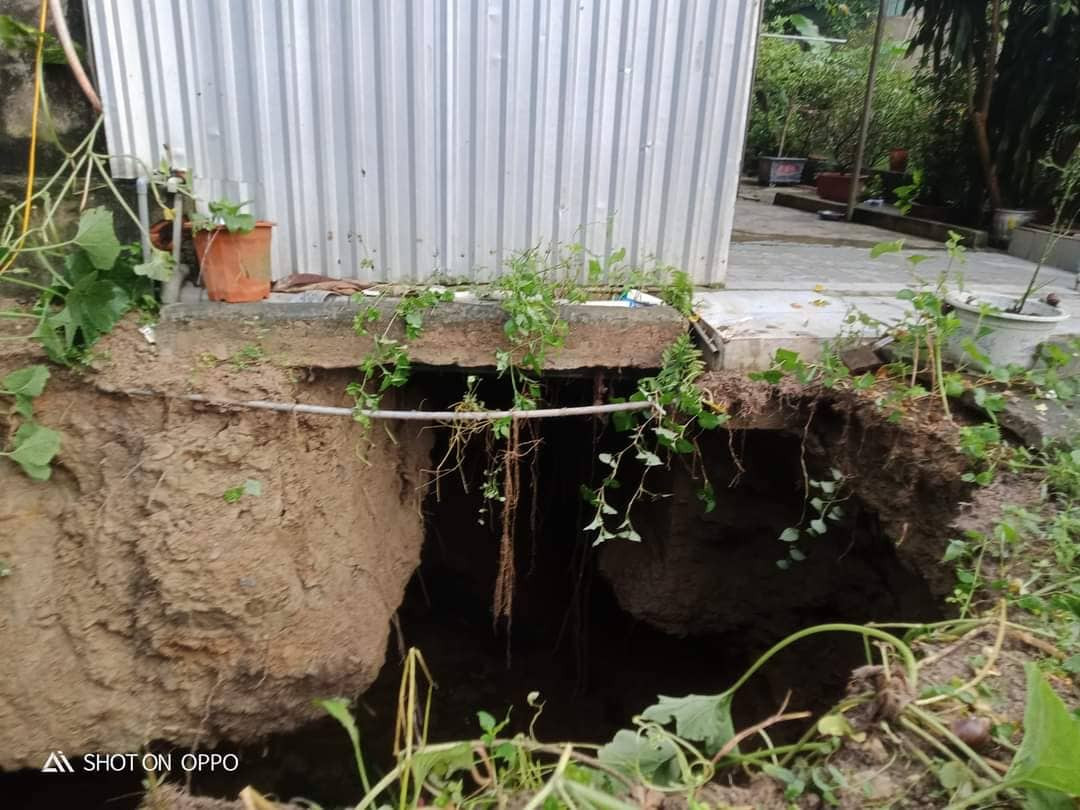 “Ban đầu hố có đường kính khoảng 1 mét nhưng sau đó nó lan rộng ra 8 mét. Có khả năng ngôi nhà sẽ sập”, lãnh đạo xã Châu Hồng cho hay.