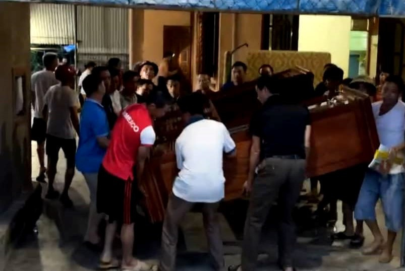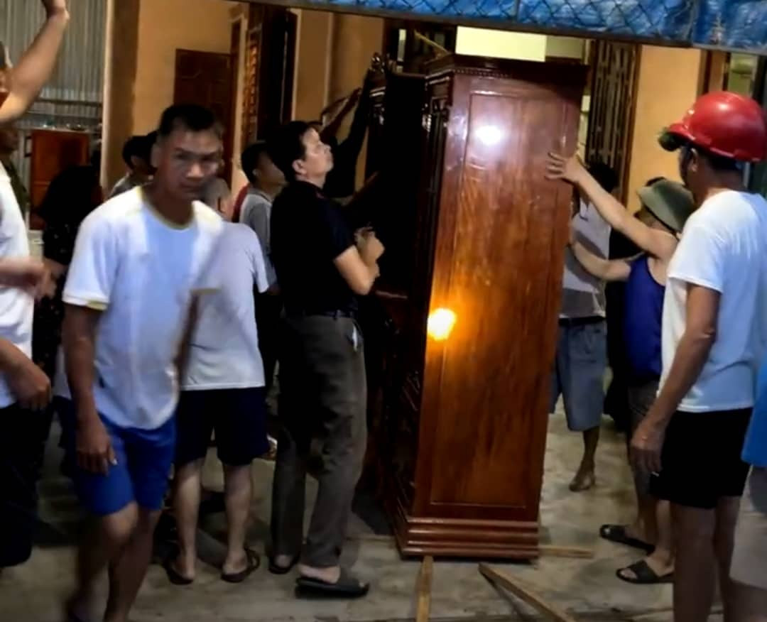 Hoảng sợ, gia đình chị Nga đã hô hoán dân làng đến hỗ trợ. Hàng chục người dân trong bản Na Hiêng nhanh chóng có mặt hỗ trợ gia đình chị Nga vận chuyển đồ đạc ra ngoài, đồng thời trình báo cơ quan chức năng.
