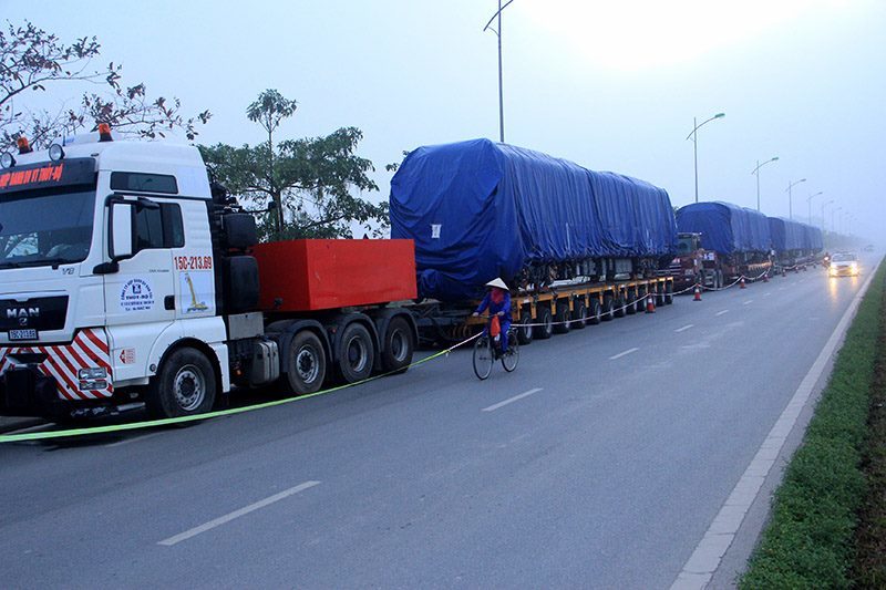 2 đầu máy, 2 toa chở khách của dự án đường sắt Cát Linh - Hà Đông cập cảng cá Hạ Long (Hải Phòng).