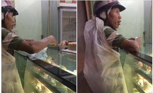 Hình ảnh người đàn ông với khuôn mặt khắc khổ, khoác trên mình chiếc bao ni lông, run lên vì ướt lạnh khi đứng mua bánh sinh nhật cho con đã khiến cho cô gái trẻ chứng kiến xúc động.