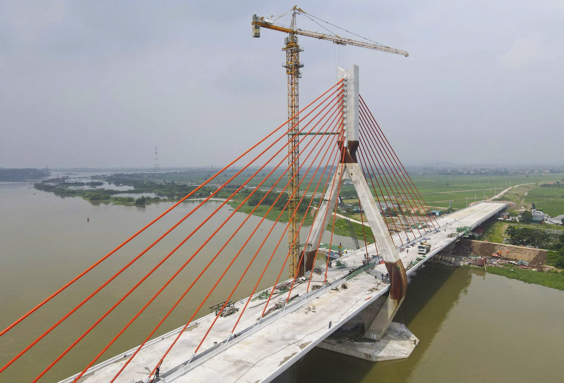 Cầu dây văng 1.500 tỷ nối Bắc Giang - Hải Dương sắp thông xe kỹ thuật