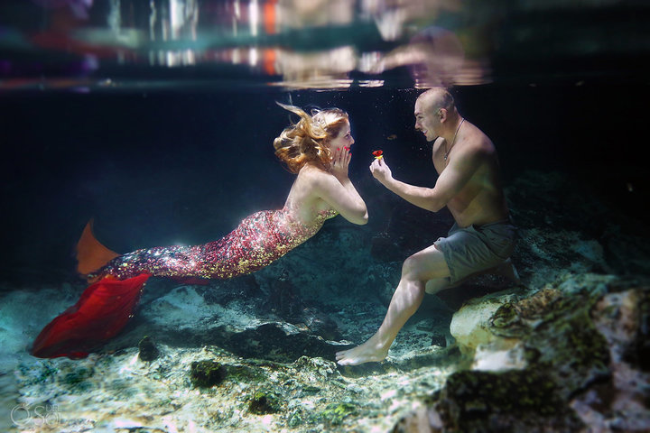 Biết người yêu thích làm nàng tiên cá, chàng trai đã thực hiện màn cầu hôn dưới nước siêu lãng mạn khi hai người đi nghỉ ở Mexico.