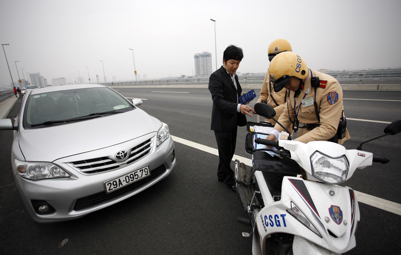 Sau nhiều ngày tuyên truyền nhắc nhở, lực lượng CSGT đã tiến hành lập biên bản và xử phạt những trường hợp vi phạm luật giao thông trên cây cầu Nhật Tân - Hà Nội.