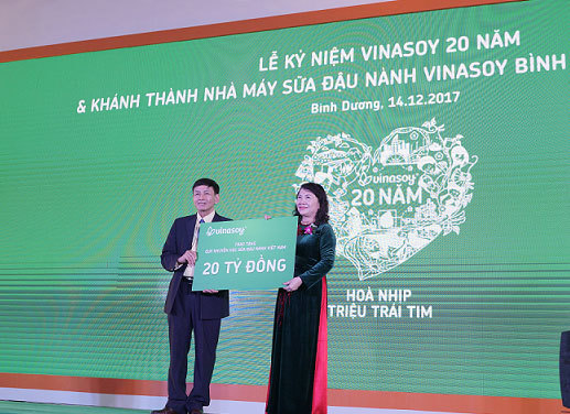Không chỉ tạo sân chơi cho các cầu thủ nhí, Vinasoy tiếp tục mang niềm vui đến các trẻ em nghèo khi chung tay đóng góp khoản tiền lớn.