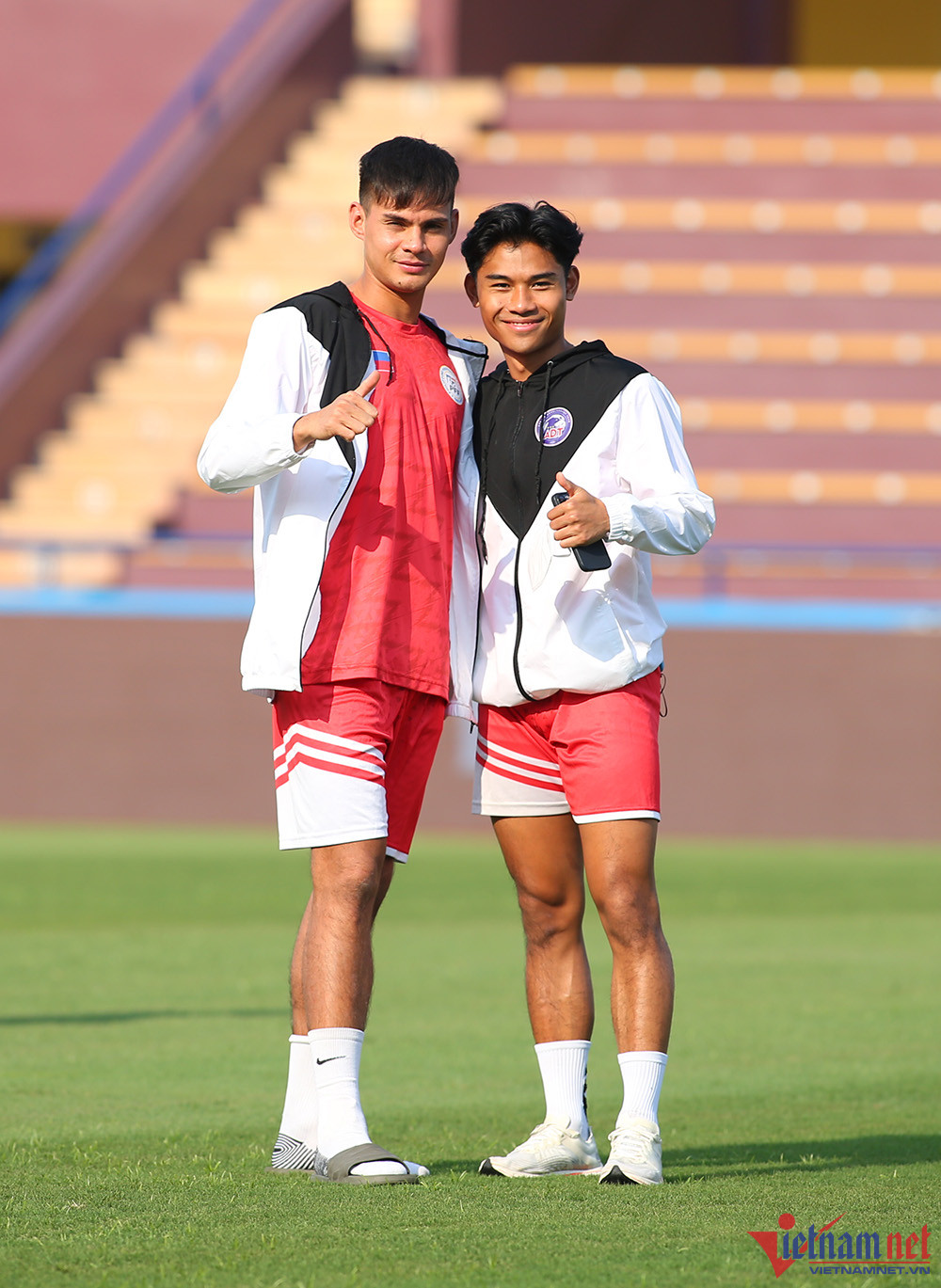 Các cầu thủ U23 Philippines tỏ ra rất thích thú trong buổi tham quan sân Việt Trì trước SEA Games 31.