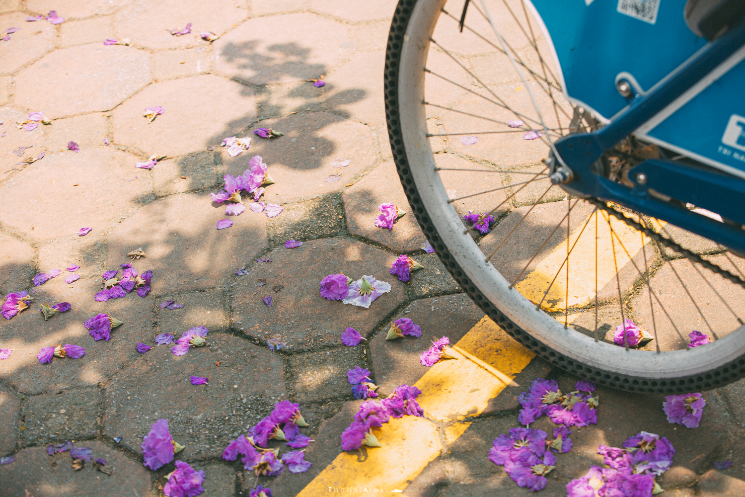 Được điểm thêm sắc tím tươi tắn của bằng lăng, bỗng góc hồ Hoàng Cầu với chiếc ghế gỗ, hàng xe đạp hay thấp thoáng xa xa là tàu điện trên cao… đều trở nên dịu dàng và mộng mơ.