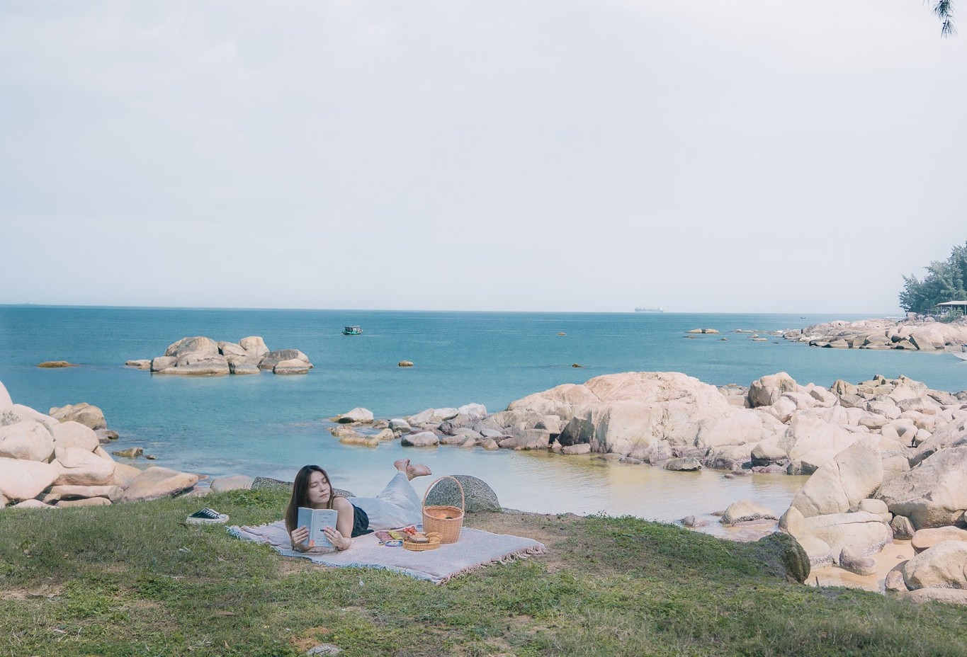 "Du khách nên đến đây vào bình minh hoặc hoàng hôn, khi tiết trời dịu mát và khung cảnh nên thơ, lãng mạn. Tuỳ thời điểm trong ngày, bãi đá dưới chân cầu có thể bị nước biển dâng cao che lấp", Minh Quân cho biết.