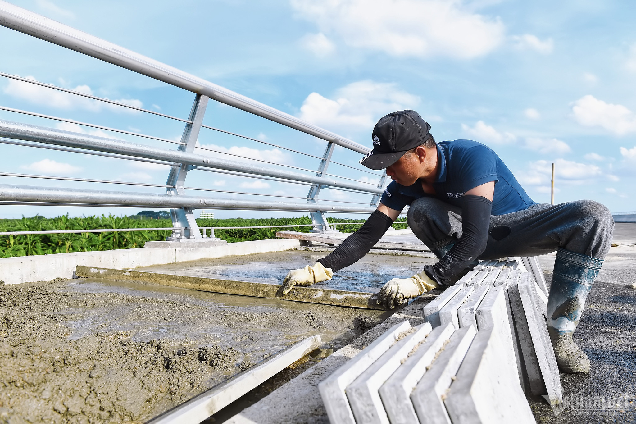Trước đó, để thi công hạng mục khó khăn nhất là nhịp vòm thép, nhà thầu phải huy động cần cẩu nặng 800 tấn từ miền Nam di chuyển khoảng một tháng bằng đường thủy.