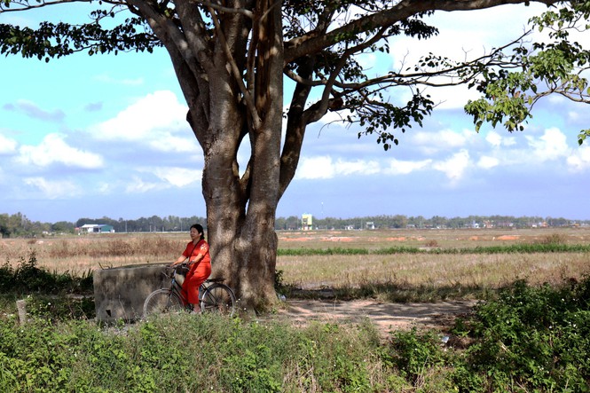 Cánh đồng vắng Hà Cảng, xã Quảng Phú, trở nên nhộn nhịp trong những ngày gần đây từ sự nổi tiếng của cây cô đơn này. Ảnh: Ngọc Văn- Báo Tiền Phong.