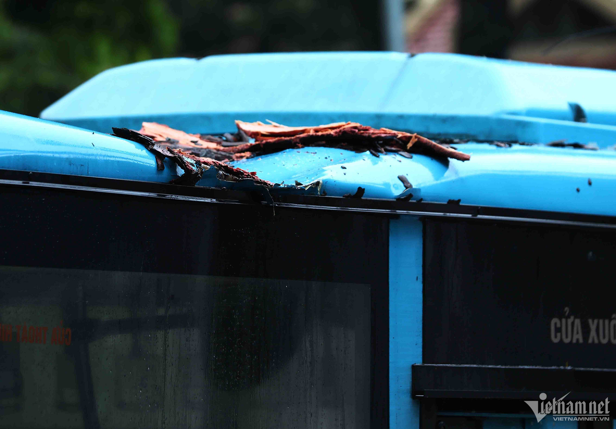 Cây lớn đè trúng ô tô buýt đang tiếp cận điểm đón, trả khách
