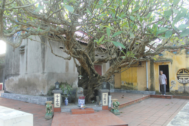 Cây đại có đường kính khoảng 1m, cao 15m, tán lá phủ rộng ra xung quanh. Dù có tuổi đời hàng trăm năm nhưng cây vẫn sai hoa, cành lá xum xuê và mang vẻ đẹp hiếm có.