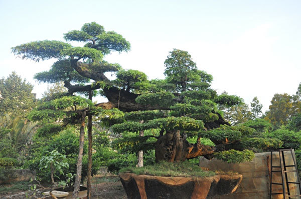 Theo người chủ, cặp cây được tạo dáng theo kiểu tứ diện sơn thủy, mỗi một chi có 2 nhánh, hiện đã hơn 150 năm tuổi và đặc biệt quý hiếm.