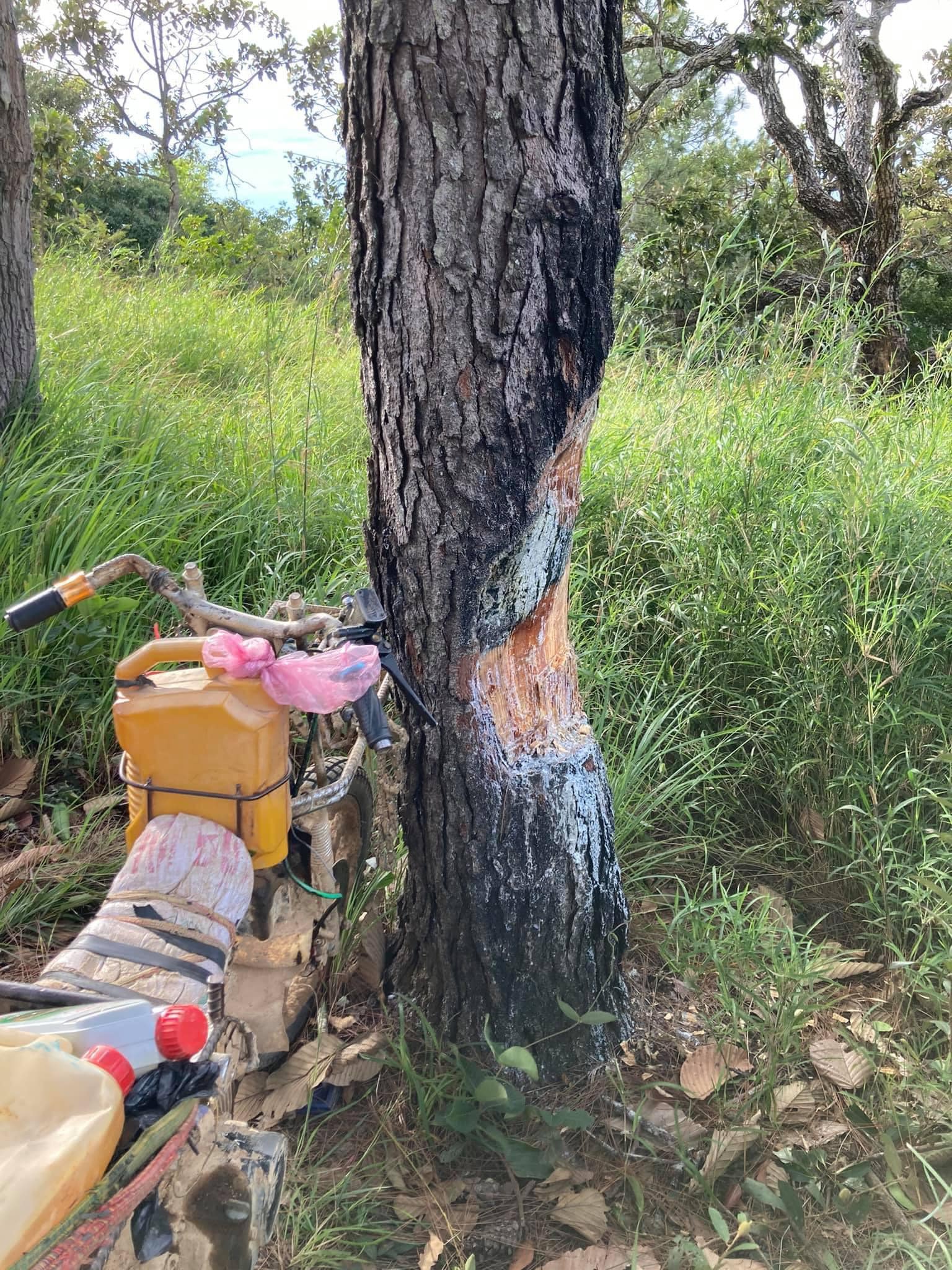 Cây thông trong rừng ở cung Tà Năng - Phan Dũng bị "xẻ thịt" lấy nhựa. |