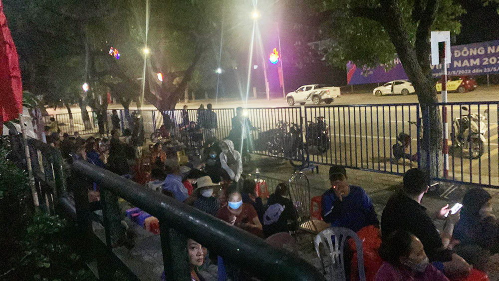 Dù 8h sáng 3/5 vé các trận đấu tại vòng bảng (bảng A) môn bóng đá nam SEA Games 31 mới được BTC bán tại quầy, nhưng từ đêm hôm trước, rất đông CĐV đã có mặt bên ngoài NTĐ tỉnh Phú Thọ chờ đợi.