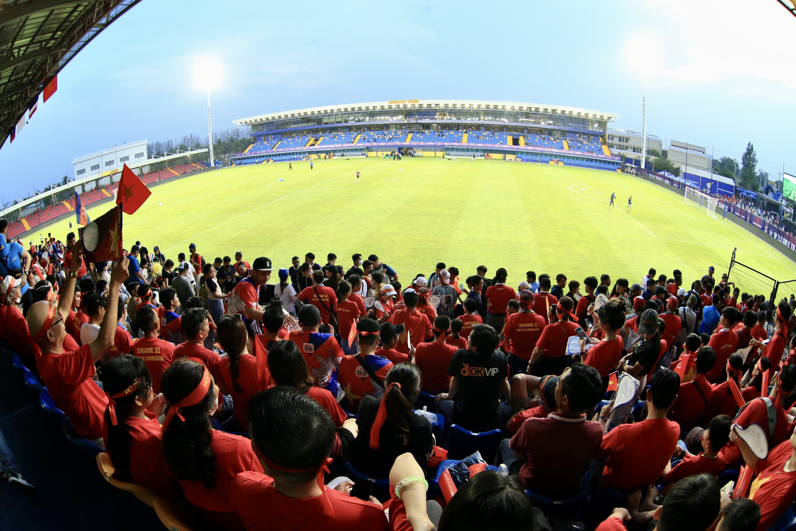 Rất đông CĐV Việt Nam có mặt trên sân Prince để tiếp lửa cho U22 Việt Nam trong trận ra quân SEA Games 32 gặp U22 Lào.