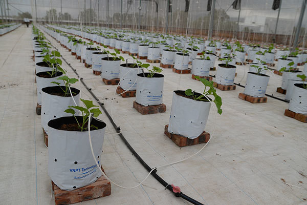Khu vực nhà màng của VNPT Technology trồng nhiều loại cây như dưa lưới, rau cải, mùng tơi, xà lách… và dự kiến sẽ thêm một số loại cây mới thời gian tới. Trong quá trình nuôi trồng, VNPT Technology áp dụng đầy đủ ứng dụng của giải pháp nông nghiệp thông minh như hệ thống tưới tiêu, chiếu sáng tự động, đo độ ẩm, độ PH… Toàn bộ quá trình tăng trưởng của cây và hoạt động của hệ thống tự động đều được VNPT Technology theo dõi, giám sát chặt chẽ nhằm cải tiến tối ưu; đồng thời bổ sung thêm những tính năng, hệ thống cần thiết trong quá trình trồng trọt, chăn nuôi thực tế, tiến tới hoàn thiện giải pháp nông nghiệp thông minh của công ty.