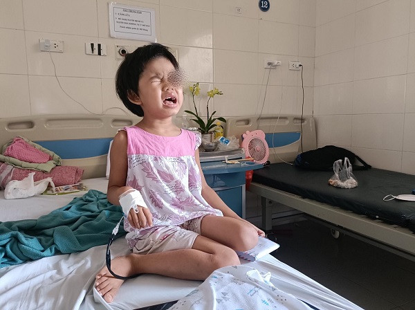 “Nghe bác sĩ nói về bệnh tình của con, vợ chồng tôi rụng rời chân tay. Vì bệnh ung thư nguyên bào võng mạc của con đã ở giai đoạn cuối, lại di căn nên bắt buộc phải làm phẫu thuật bỏ đi mắt bên phải”, anh Phương nhớ lại.
